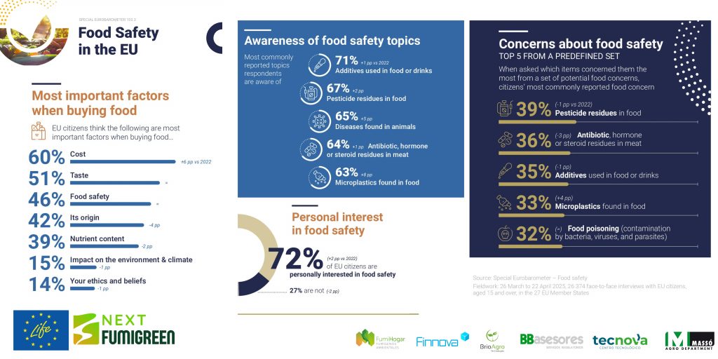 Estos datos, recogidos entre más de 26.000 ciudadanos de los 27 Estados miembros, confirman una tendencia sostenida: la sociedad europea demanda alimentos más seguros, sostenibles y transparentes. En este contexto, proyectos como LIFE NextFUMIGREEN cobran especial relevancia al ofrecer soluciones naturales para el control de plagas, reduciendo la dependencia de pesticidas químicos en los cultivos hortícolas de invernadero.