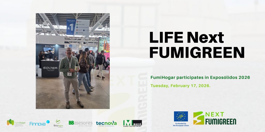 17 de febrero de 2026. L´Hospitalet de Llobregat (Barcelona). La empresa Fumi-Hogar ha presentado una innovadora solución para la agricultura sostenible durante la celebración de Exposólidos 2026 (12º Salón Internacional de la Tecnología y el Procesamiento de Sólidos), celebrada en Barcelona el pasado martes 10 de febrero. En este encuentro, clave para la innovación industrial, se mostraron los avances de LIFE NextFUMIGREEN, un proyecto europeo que sustituye los pesticidas químicos por extractos naturales.